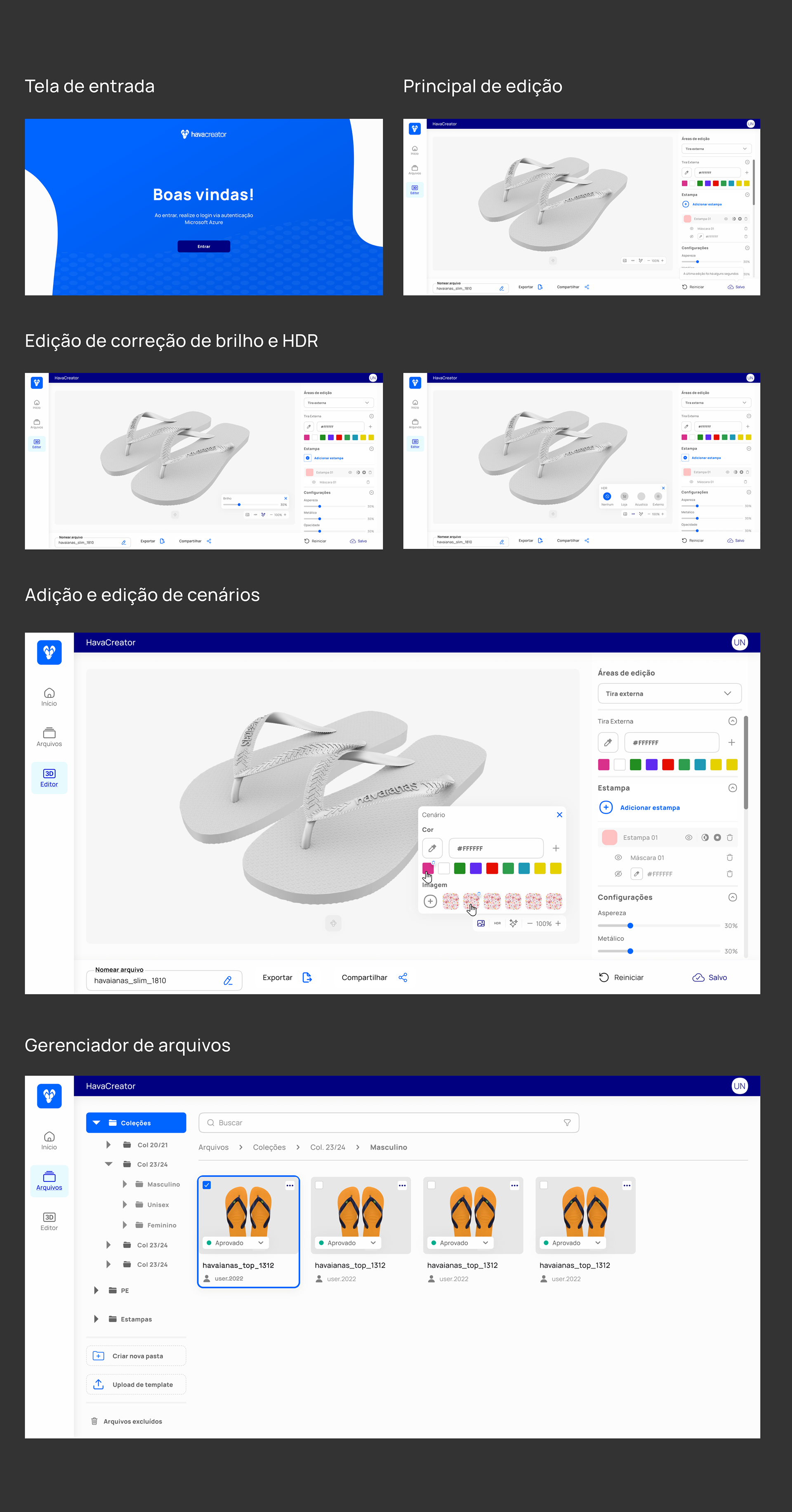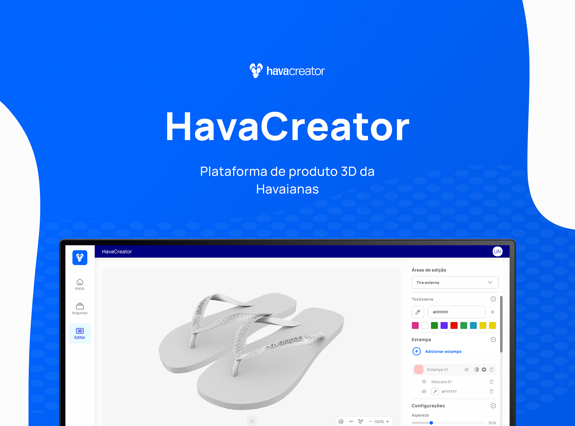 Com o crescente aumento de portfólio, e consequentemente a criação de novos produtos e estampas, a Havaianas necessitava de um ambiente 100% digital para testar as criações visuais feitas pelos designers internos, em sua diversificada linha de produtos, visto que os testes físicos estavam elevando o preço do produto em um cenário onde havia a baixa de matéria prima.